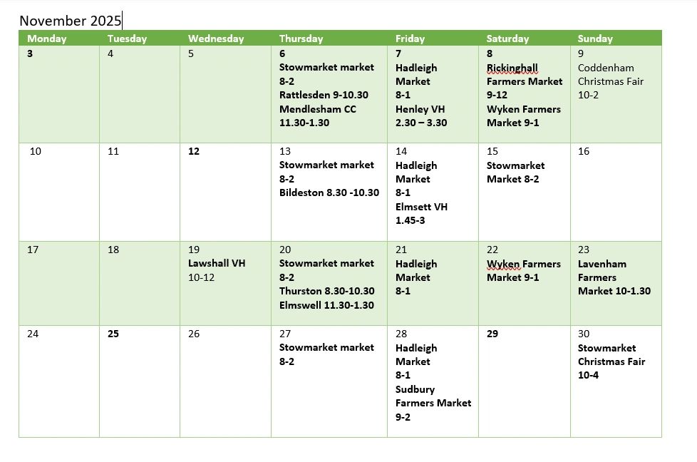 Find us at Stowmarket Market every Thursday and on the 1st and 3rd Saturday of each month. .